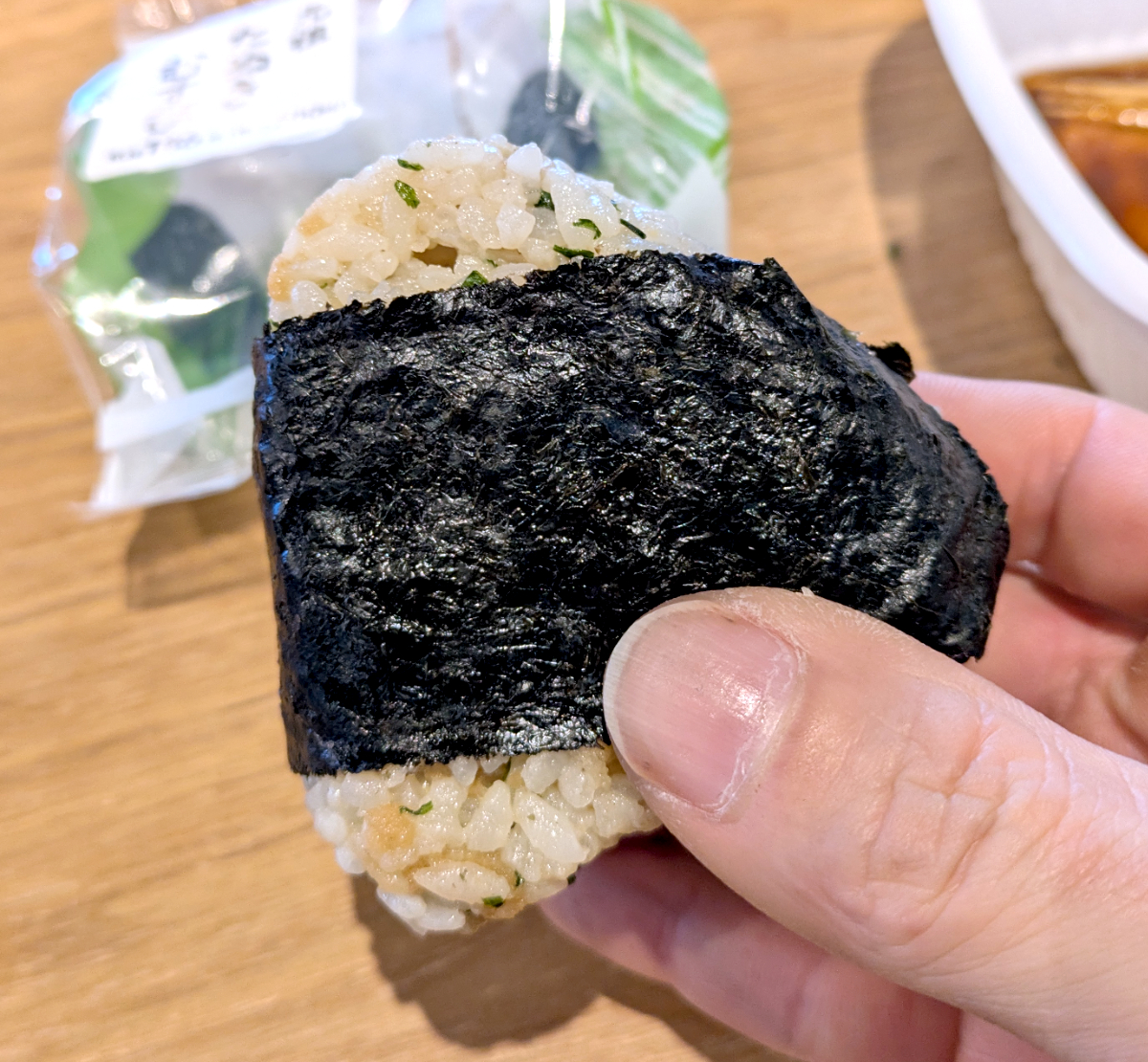 最後に元祖たぬきむすび、これはローソンが「悪魔のおにぎり」を発売するずっと前から天神屋で販売している定番のひとつ。ローソンのよりも優しい味付けで、ひと口食べるとクセになる味わいである。