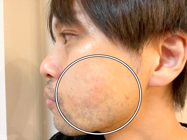 ヒゲを剃るとこんな感じだ。鼻の下やあごと比べると、青みが若干抑えられているような気がしないでもない。