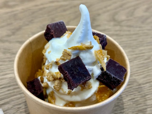 メニューの中で気になったのは「アマゾンの奇跡(475円)」。アサイー・グラノーラ・練乳を添えたソフトクリームだ。以前、「ソフトクリームで世界を巡る旅」に登場した人気メニューが期間限定で復活したのだとか。いわゆる地域の特色を生かしたメニューの1つである。