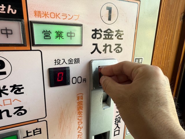 というわけで、お金を投入。私が持ってきたのは約5kgなので100円を入れます。