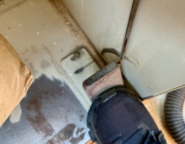 足元のペダルを踏んだら米袋に白米が流れ込む仕組みだ。