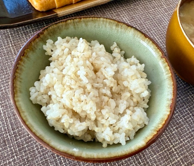 全体的にやや薄黄色く色づいているものの、食べてみたら意外と普通だった。ほんの少しだけプチプチとした食感が残っているくらいか。それでも3分・5分づき米と比べれば “ほぼ白米” なのだろう。7分づき米は「分づき米がはじめての方」にオススメだそうだ。