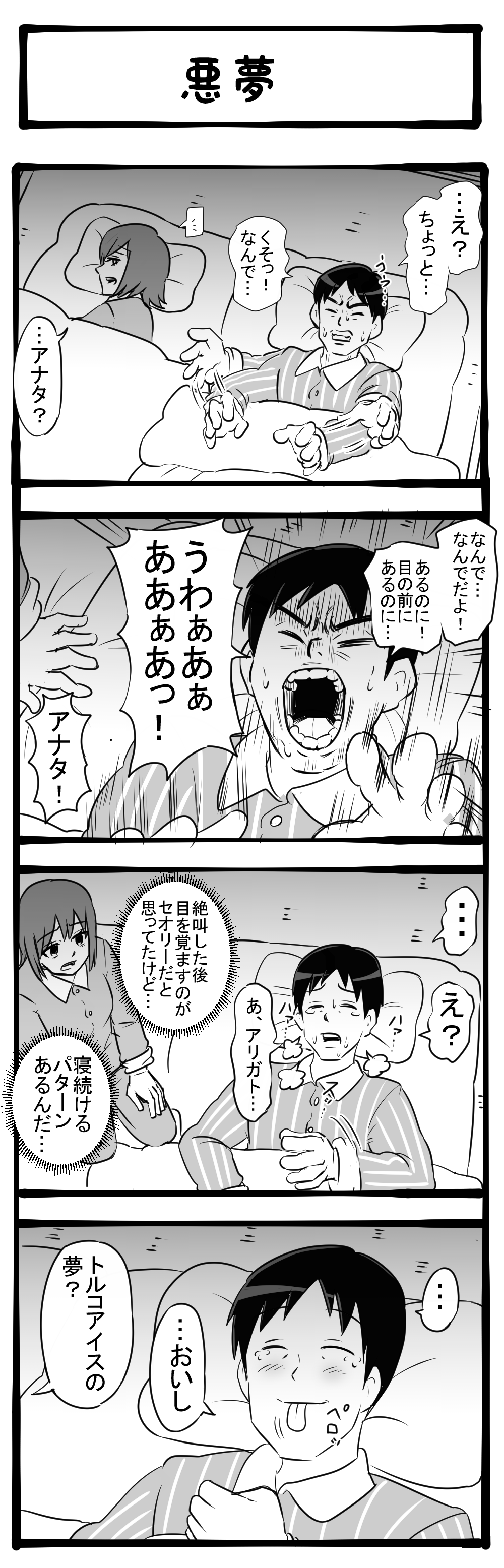 あるのに手に出来ない! 夫の精神を蝕(むしば)む夢! 四コマサボタージュBYD第49回 「悪夢」