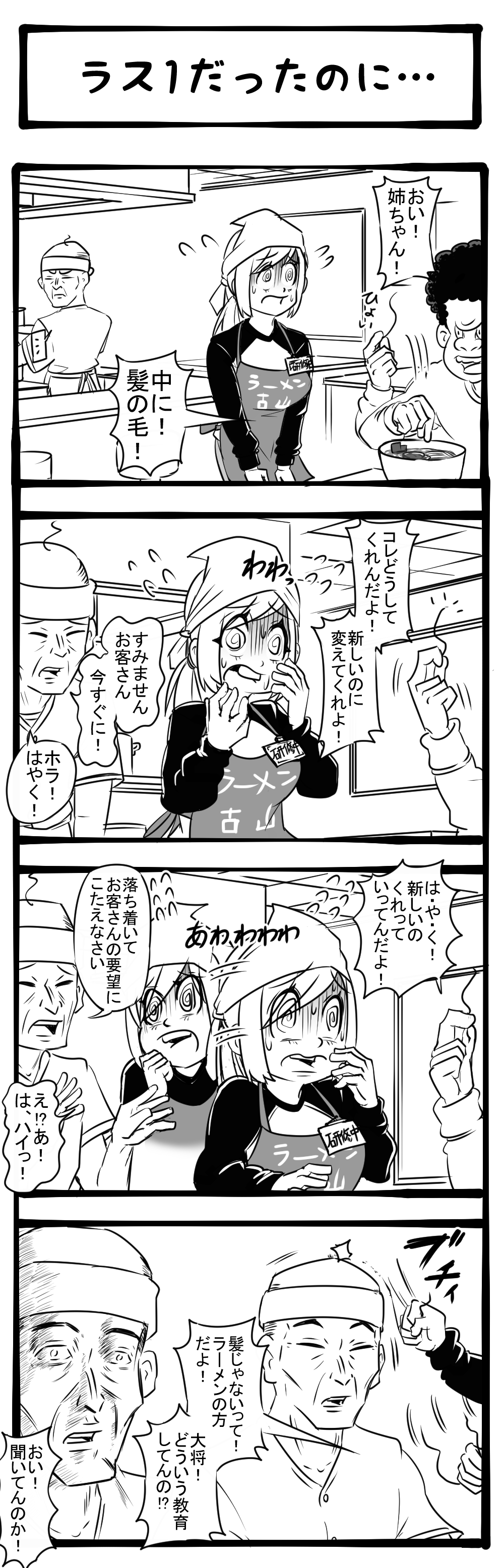 あんまプレッシャーかけんな! パニックにおちいる研修店員! 四コマサボタージュBYD第50回「ラス1だったのに…」
