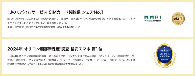 IIJmioは、加入手続き、通信速度、利用料金など全9項目で評価され、2024年のオリコン顧客満足度(R)調査「格安スマホ」ランキングで総合1位を獲得。安心してスマホの乗り換えができる実績抜群の格安SIMなのだ。