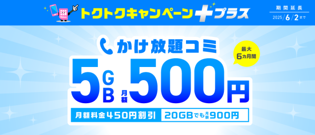 同じ理屈で5ギガプランは10分かけ放題を付けても500円。本来950円のところ、6カ月間450円割引が発生する。自宅や職場にWi-Fi環境があり、日中そこまでネットを使わないなら5ギガプランで十分だろう。