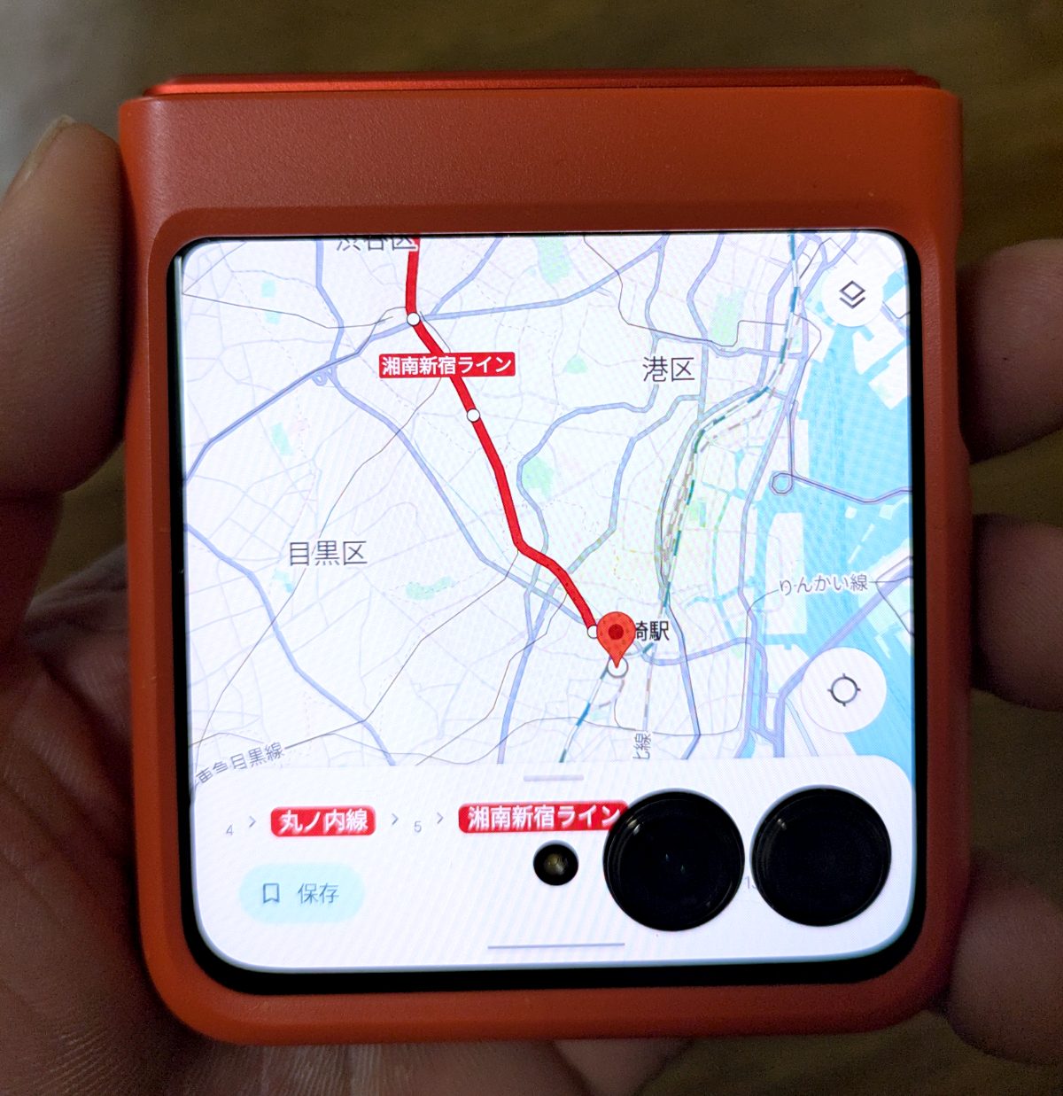 使用頻度の高い地図アプリも手のひらで確かめられるのは嬉しい。これなら歩きながら地図を確認しやすいな。