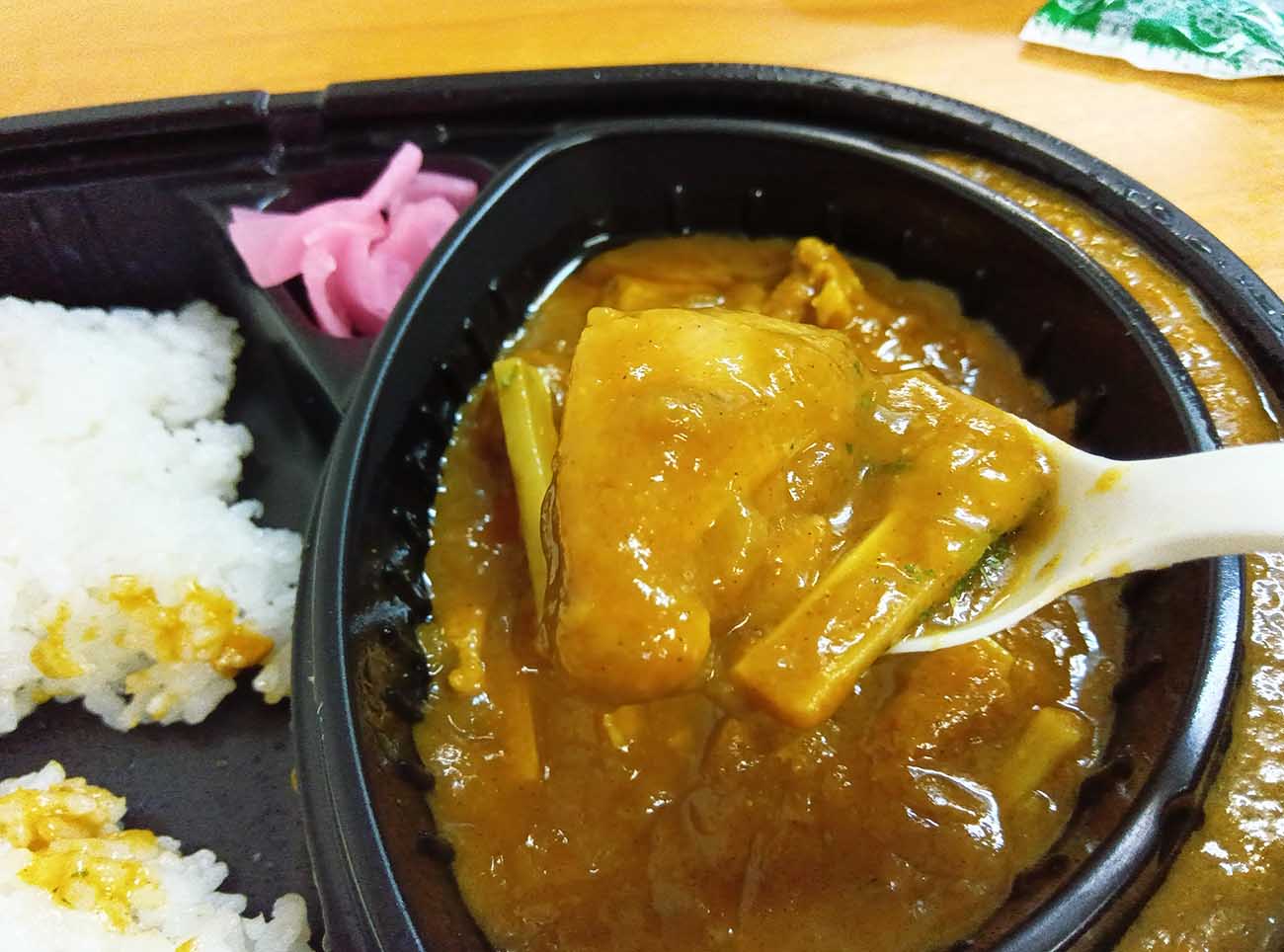 価格が価格だけに味にはそんなに期待していなかったのだが、カレーライスはチキンがゴロゴロしていて出汁のような味が強く思ったよりもしっかりした味だ。ご飯が少なめだったので、量を減らす替わりに味はある程度こだわっているのかもしれない。