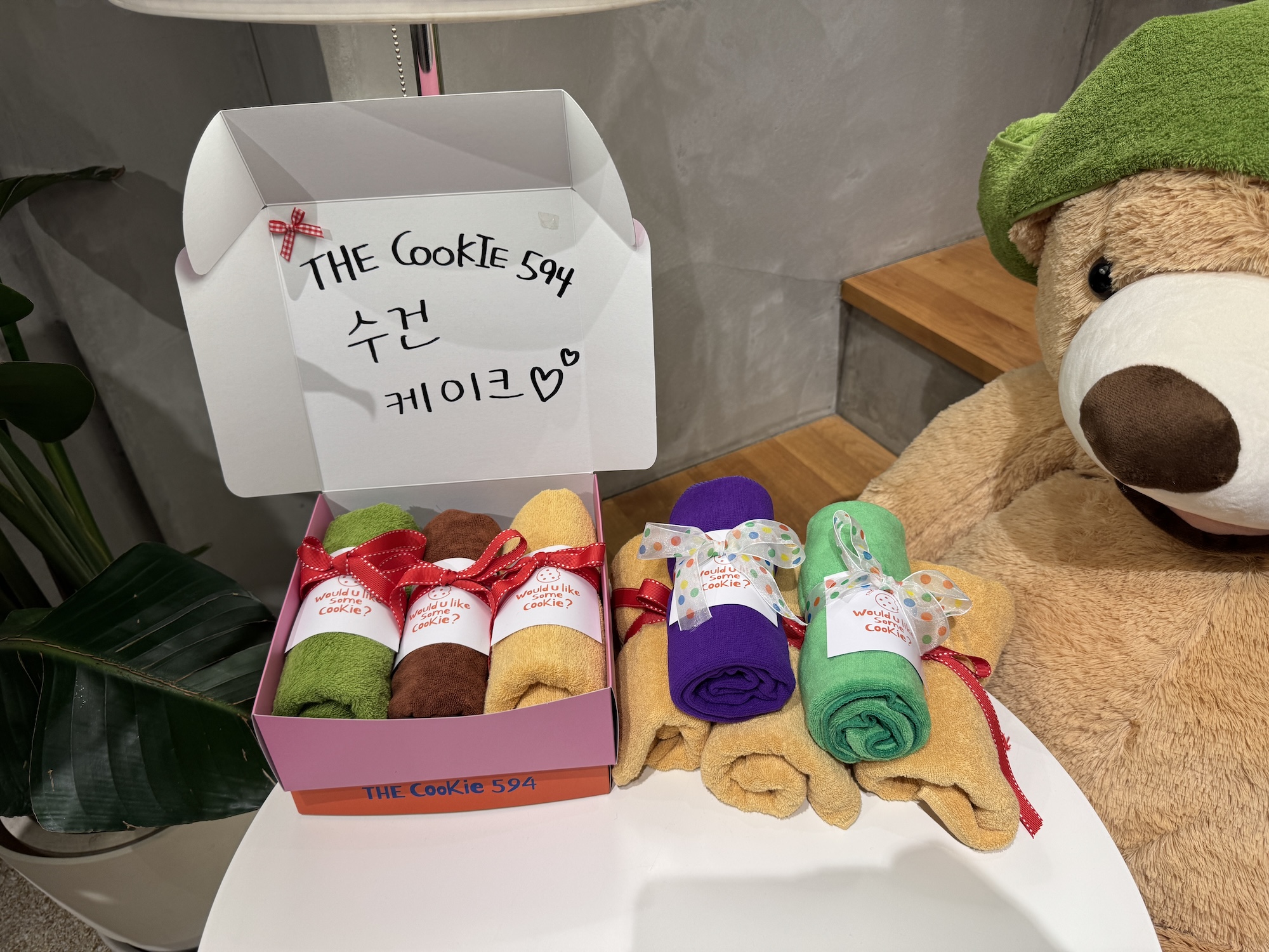 タオルケーキは3つ以上の購入で「いかにも韓国」といった感じのテンション上がるボックスに入れてもらえるぞ。カワイイねぇ。