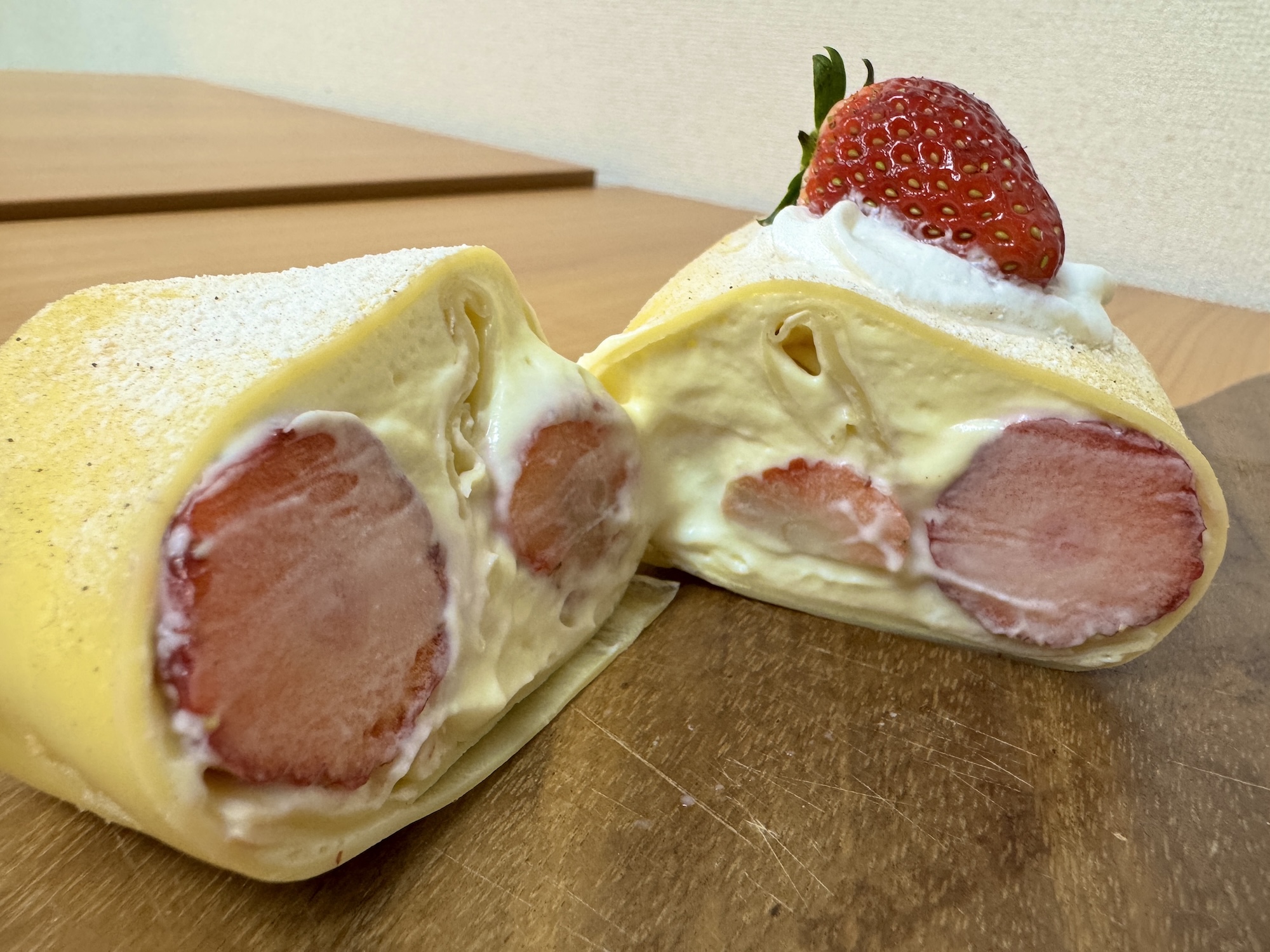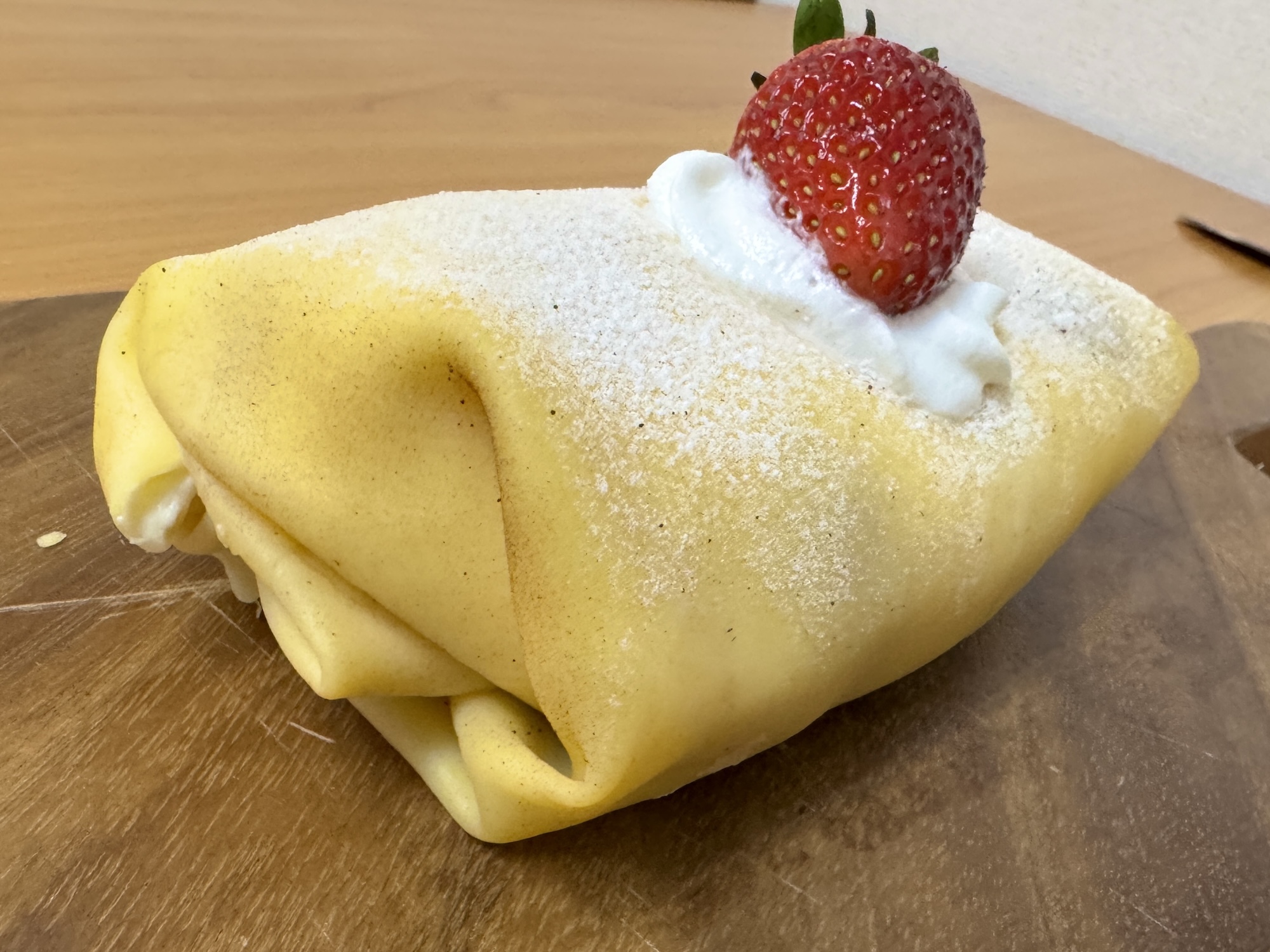 クリームとイチゴをクレープ生地で包んだものであるため、当然ながら味はクレープである。
