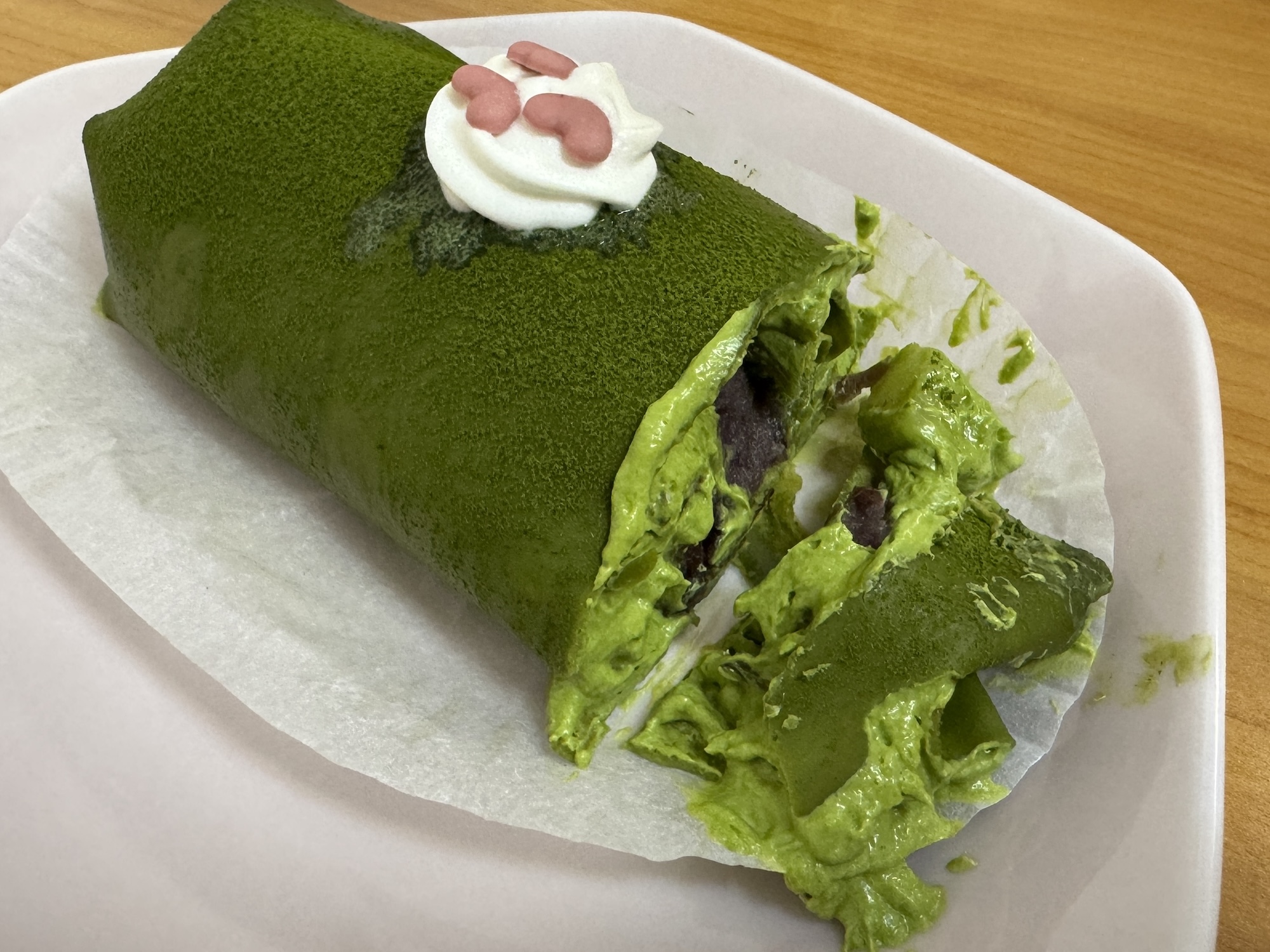 いや、分かってます。もちろんこのスイーツの形状が “巻いた状態のタオル” っぽいことは、さすがの私にも分かりますよ。しかしですね、だとすると “ケーキ” の要素が若干怪しくなってくるうえ、そもそもそれほど “巻いた状態のタオル” っぽいかというと、言われなきゃ気づかない気もしなくないのであります。