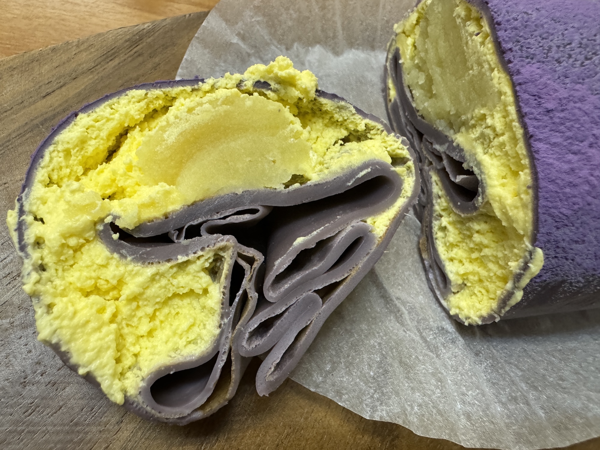 一応お伝えしておくと『焼きいもタオルケーキ』は甘すぎない焼きいもクリームと紫いもクレープがの彩りが絶妙でありました。ネーミングの件はさておき、非常においしくてビジュ抜群のタオルケーキ。今後日本で流行ろうが流行るまいが、一度は食べてみてほしい。