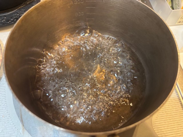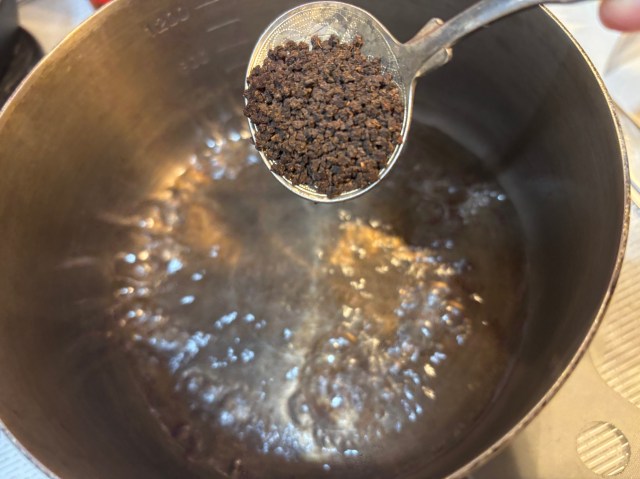 ②沸騰したらティーバッグ(茶葉)を鍋に入れて火を止める。