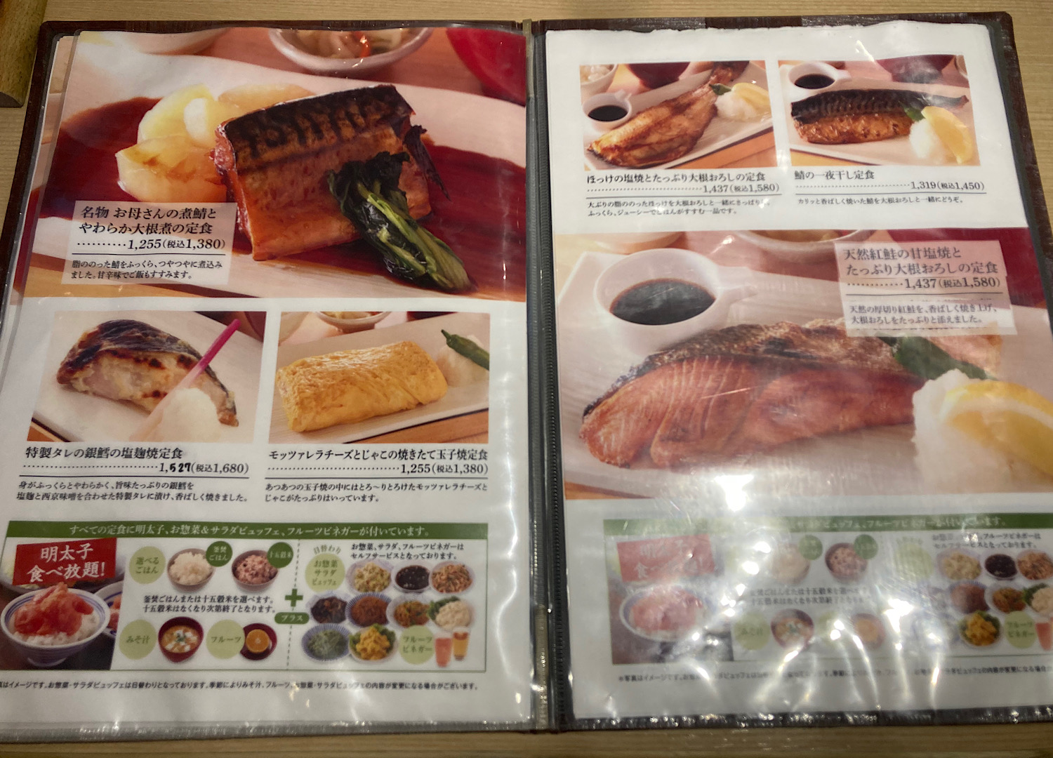 てなわけで入店。席に置いてあった説明書きによれば、メインを選ぶと自動的に「お惣菜・明太子・ご飯・お味噌汁」のおかわり自由がついてくるとのこと。