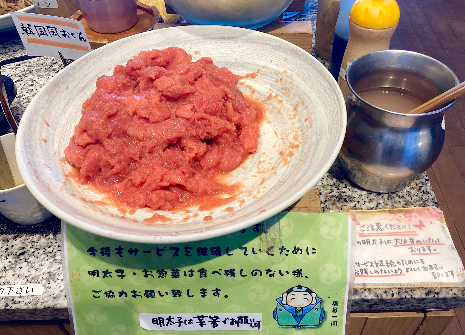 まず出迎えてくれるのがこの明太子の山。壮観……。