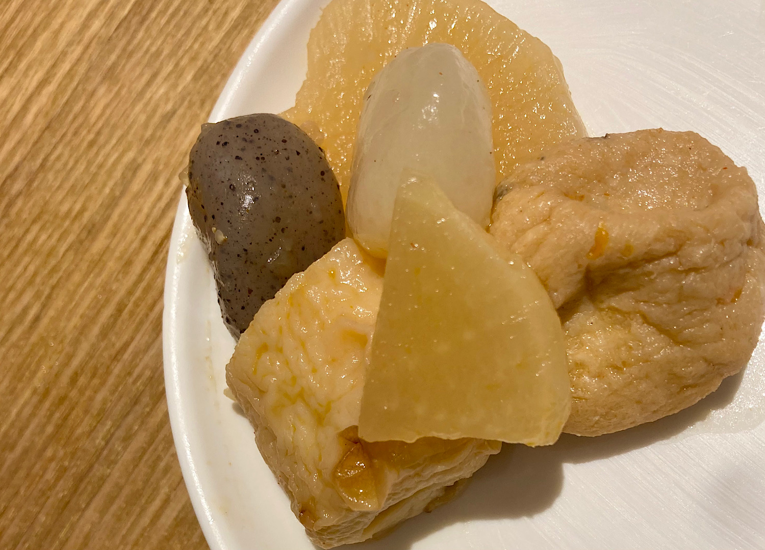 ▼気になっていた韓国風おでん。大根、ちくわ、がんもにこんにゃくと、おでんっぽい具材だけど ほんのりピリ辛。韓国にもおでんってあるのかな、あるならやっぱり辛いのかな。