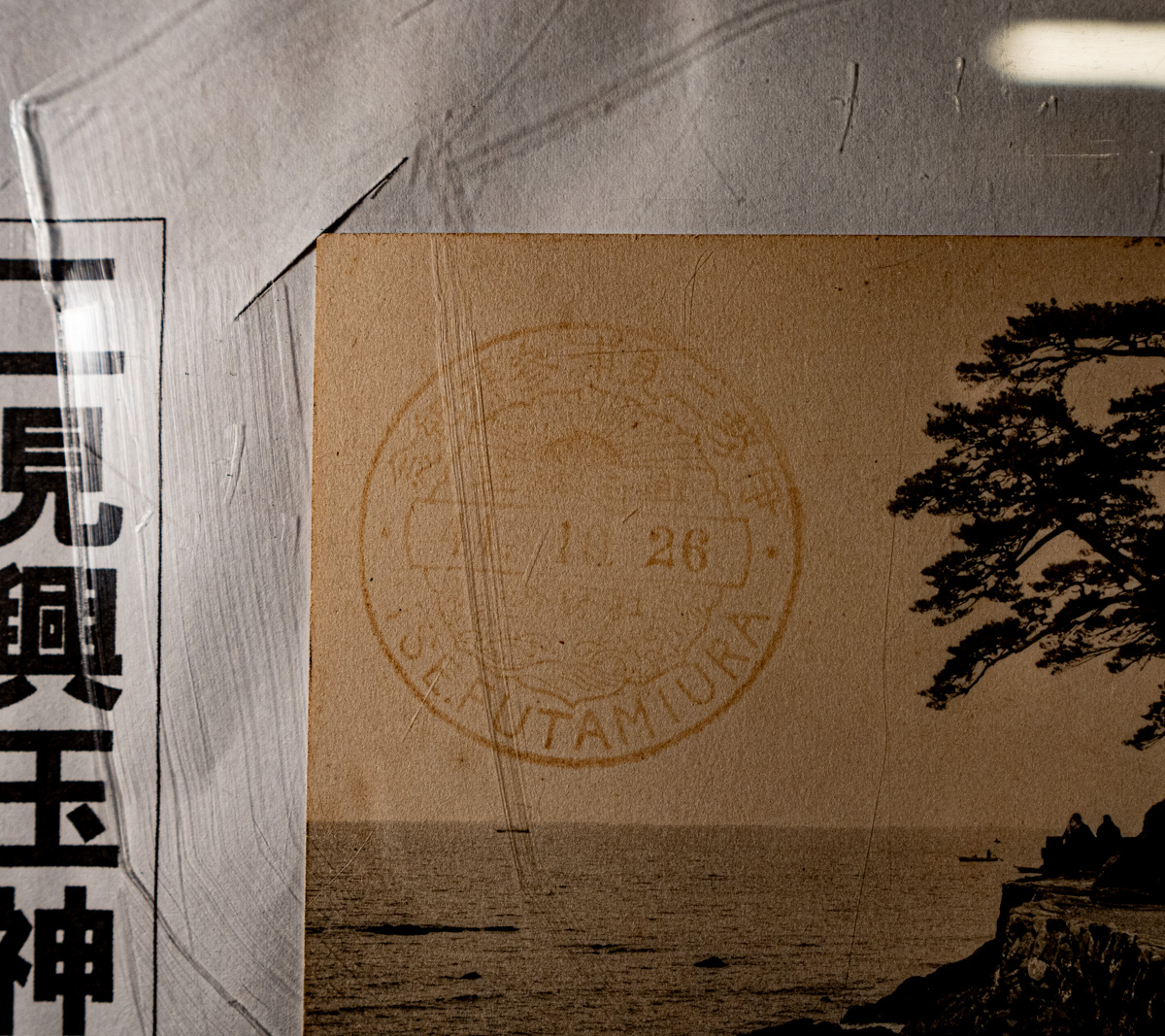▼資料館に、恐らく明治44年10月26日のスタンプ入りと思しき参道の写真があった。社殿造営前の参道の様子が写っている。
