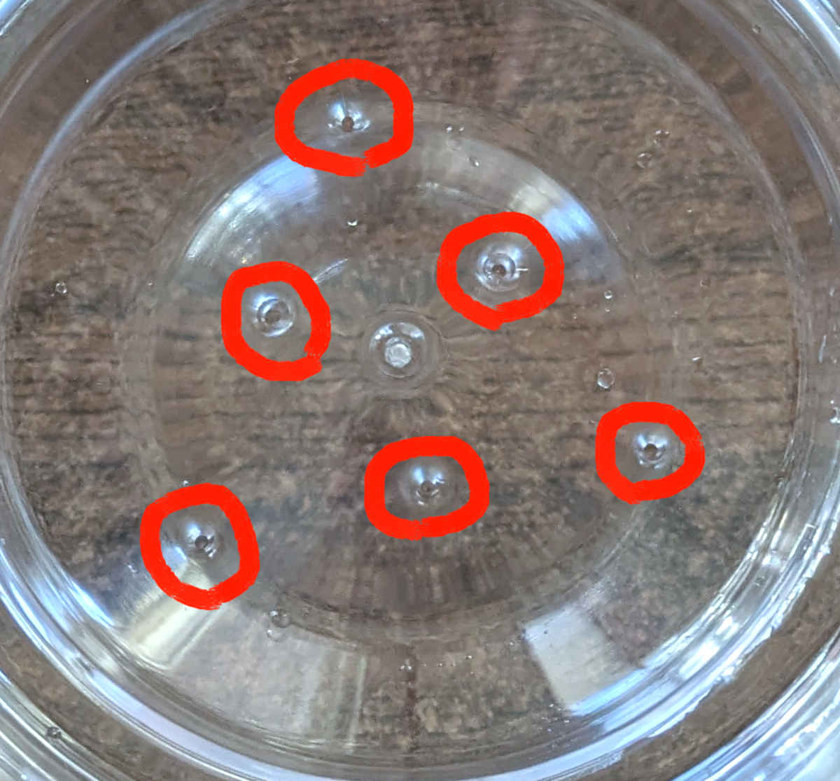 底の部分に小さな穴が6つ開いており、ここからお湯が少しずつ落ちる。
