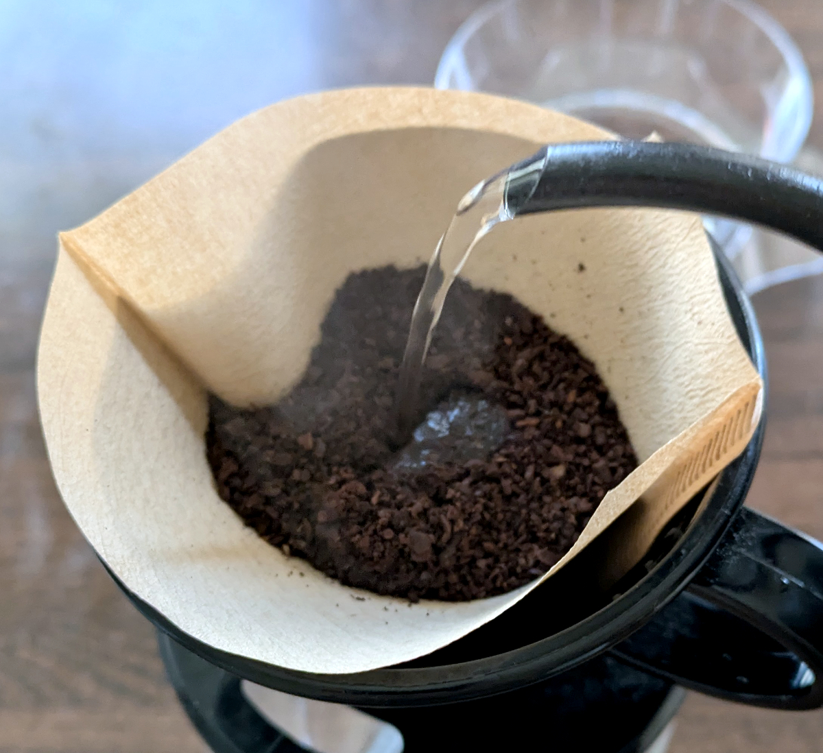 普段、私(佐藤)はステンレス製のコーヒードリップポット(250ml)を使っている。3回に分けて注ぎ入れ、自分好みの味に仕上げている。できることなら、豆を蒸らした後に1回で注ぎを終えたいのだが、勢いよく注ぐとあふれてしまうので慎重にならざるを得ないのだ。