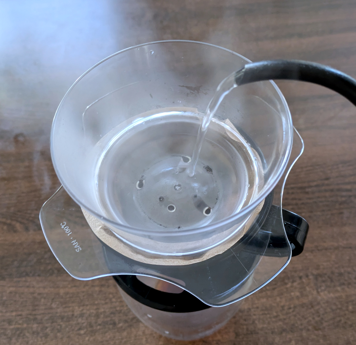 そしてシャワードリップの登場。グラつかないようにきちんと置いて、お湯を一気に投入。