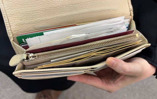 本人コメント「財布のメーカーはMOTHER HOUSE。カードなどは最低限。身分証も運転免許とマイナンバーだけ。あとは名刺や、AirTag、ダンスの会員証や回数券が入ってる。レシートなども、その日のうちに財布から抜く。お札は上下逆向き (肖像画の頭が下)に入れている」