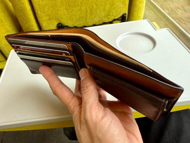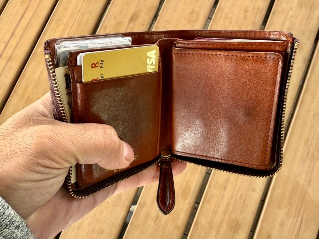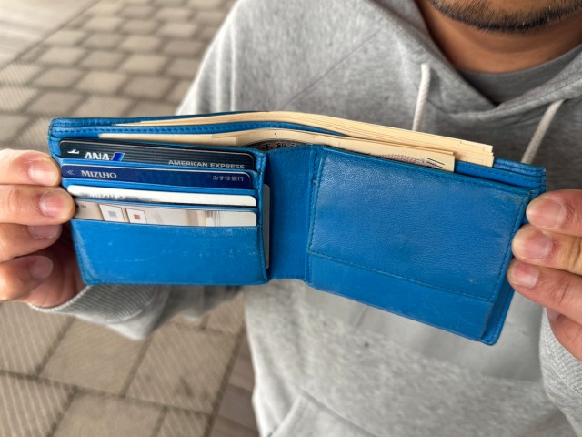 本人コメント「こだわりポイントは、ズボンのポケットに入れられるサイズでありながらカードポケットが多いこと。財布のサイズが小さすぎるとカードがそんなに入らないし、カード収納だけを考えるとサイズがデカくなりすぎる。どちらにもならないように、ちょうどいいのを選んだ。ちなみに、買ったのは10年くらい前」