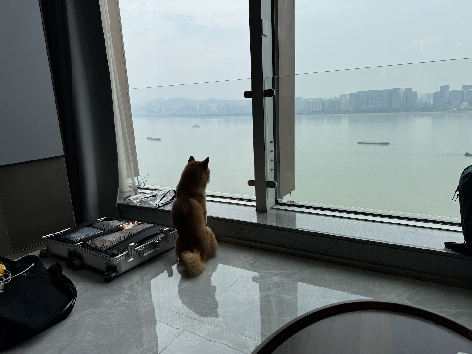窓からの絶景に祐祐も思わず「ワン」とひと鳴き……あ、言い忘れてたけど祐祐(ゆうゆう)は友人の飼い犬で今回の旅のお供。中国生まれの柴犬である。
