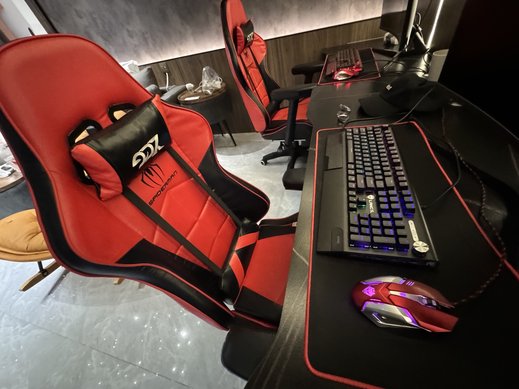 ハイスペックPCのみならず、ゲーミングチェア、ゲーミングヘッドフォン、ゲーム用マウス(マクロが登録できたりするヤツ)などオンラインゲームをガチプレイするにあたって必要な設備は全て揃っている。