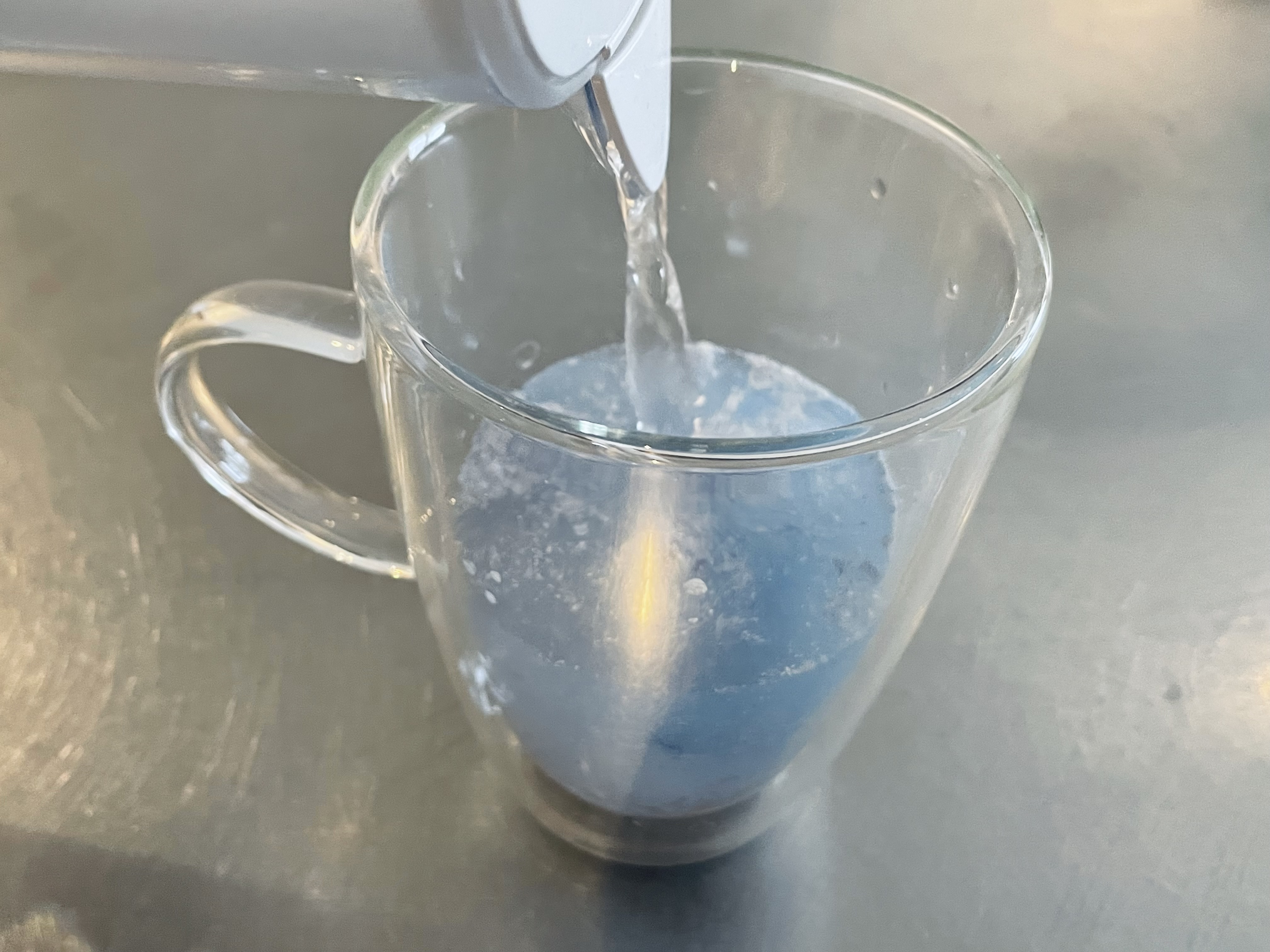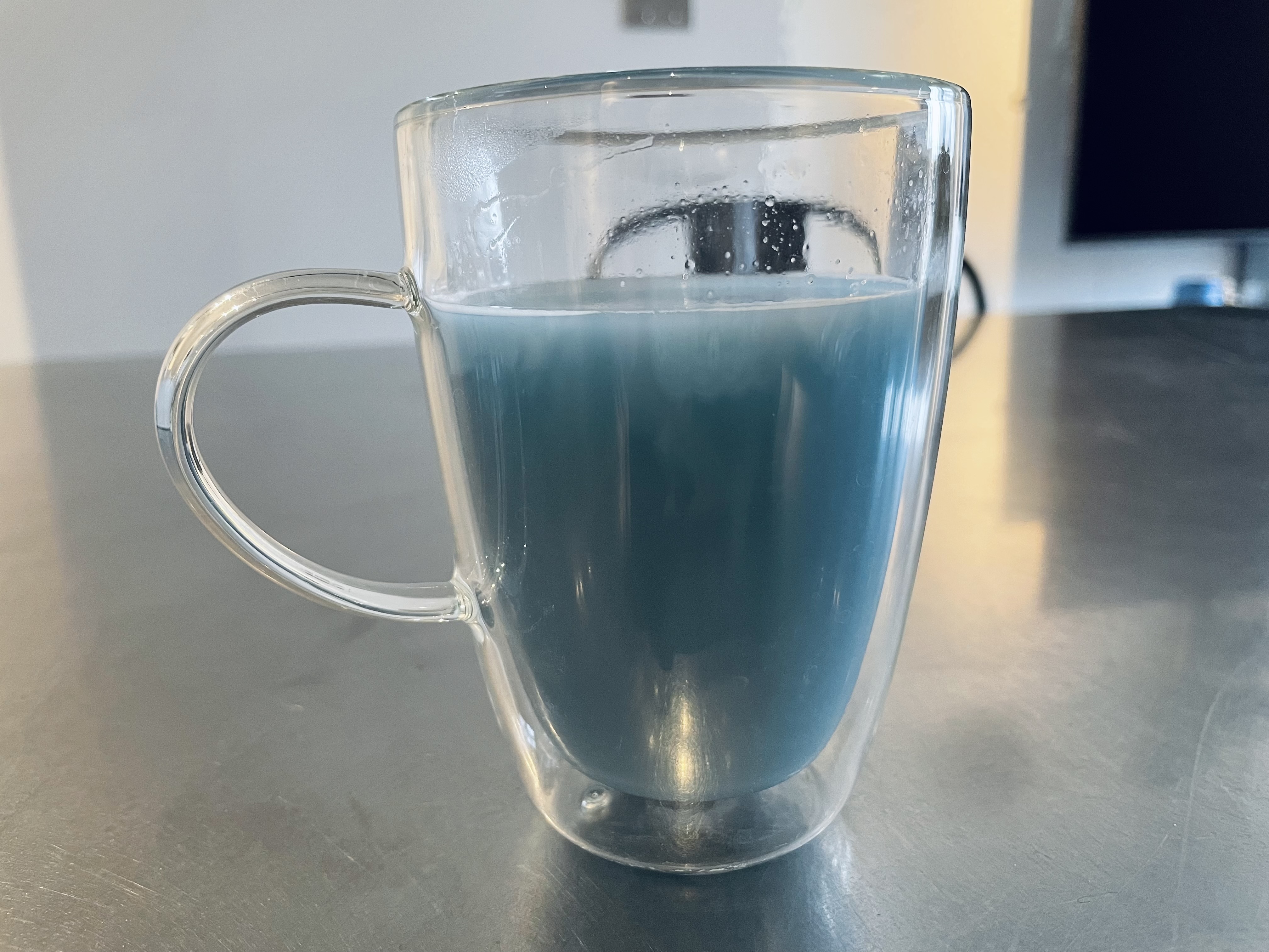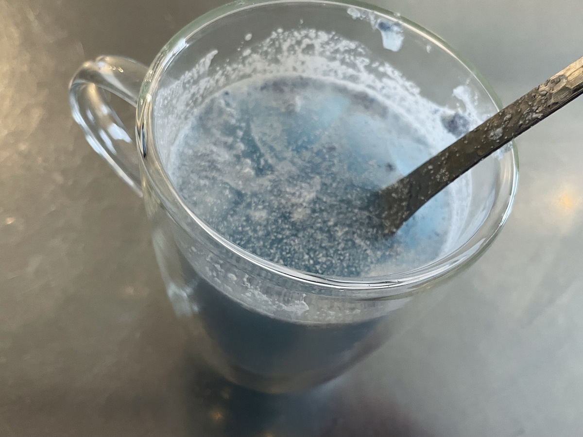 青い飲み物って人工的なイメージがあるかもしれないが、これは天然由来の色素なので安心してほしい。
