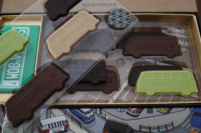 こちらもミニビートルが付いてくるのだが、チョコにもミニカーにも数種類あり、端から集めたくなること請け合い。迷ったが、まずはワーゲンと言えばのバス付きを買ってみることにした。