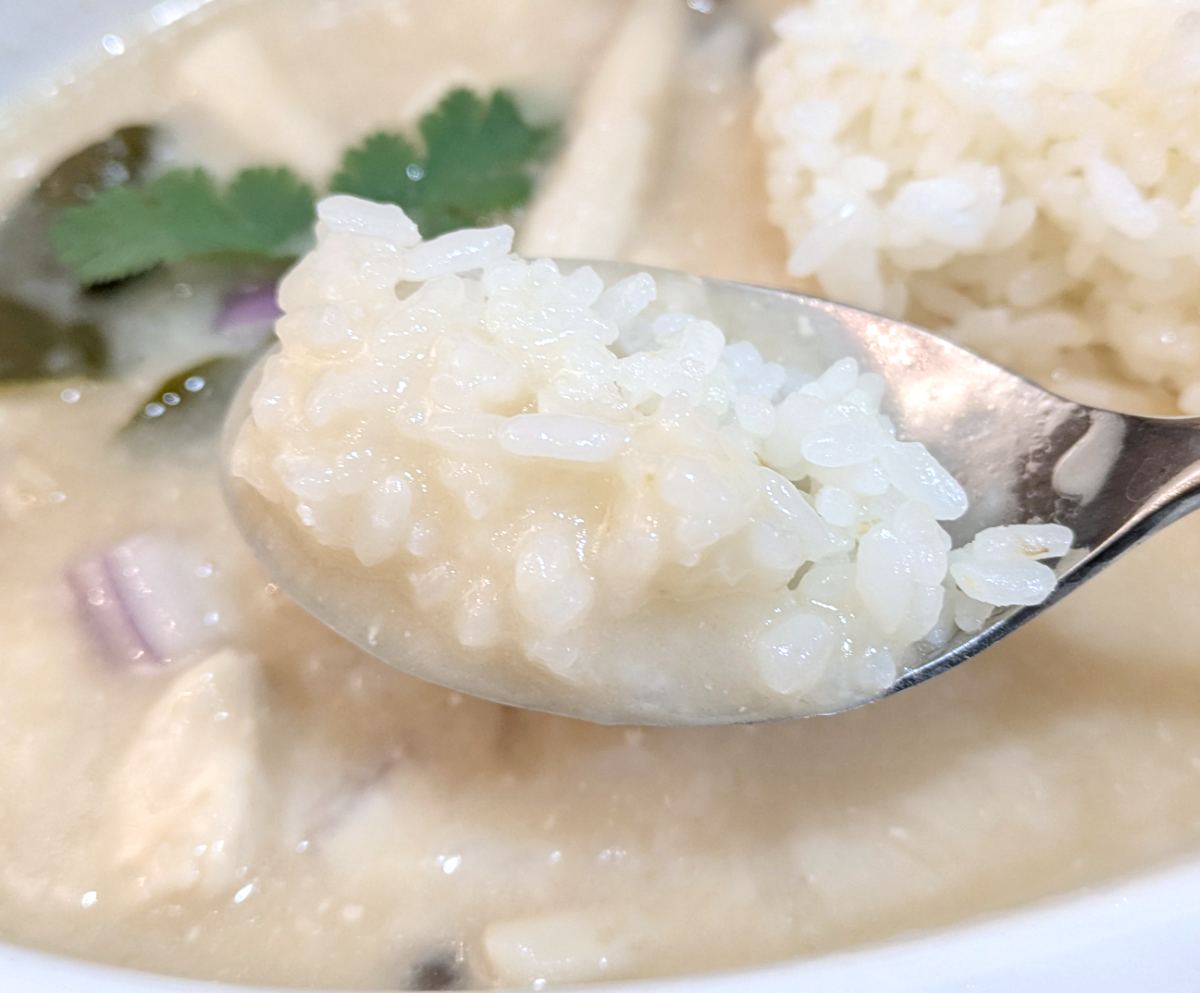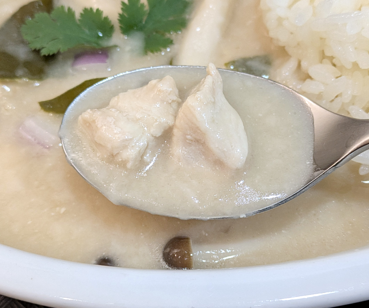 本来のトムカーガイはさらりとしたスープだけど、これはライスと絡むようにややとろみをつけているようだ。