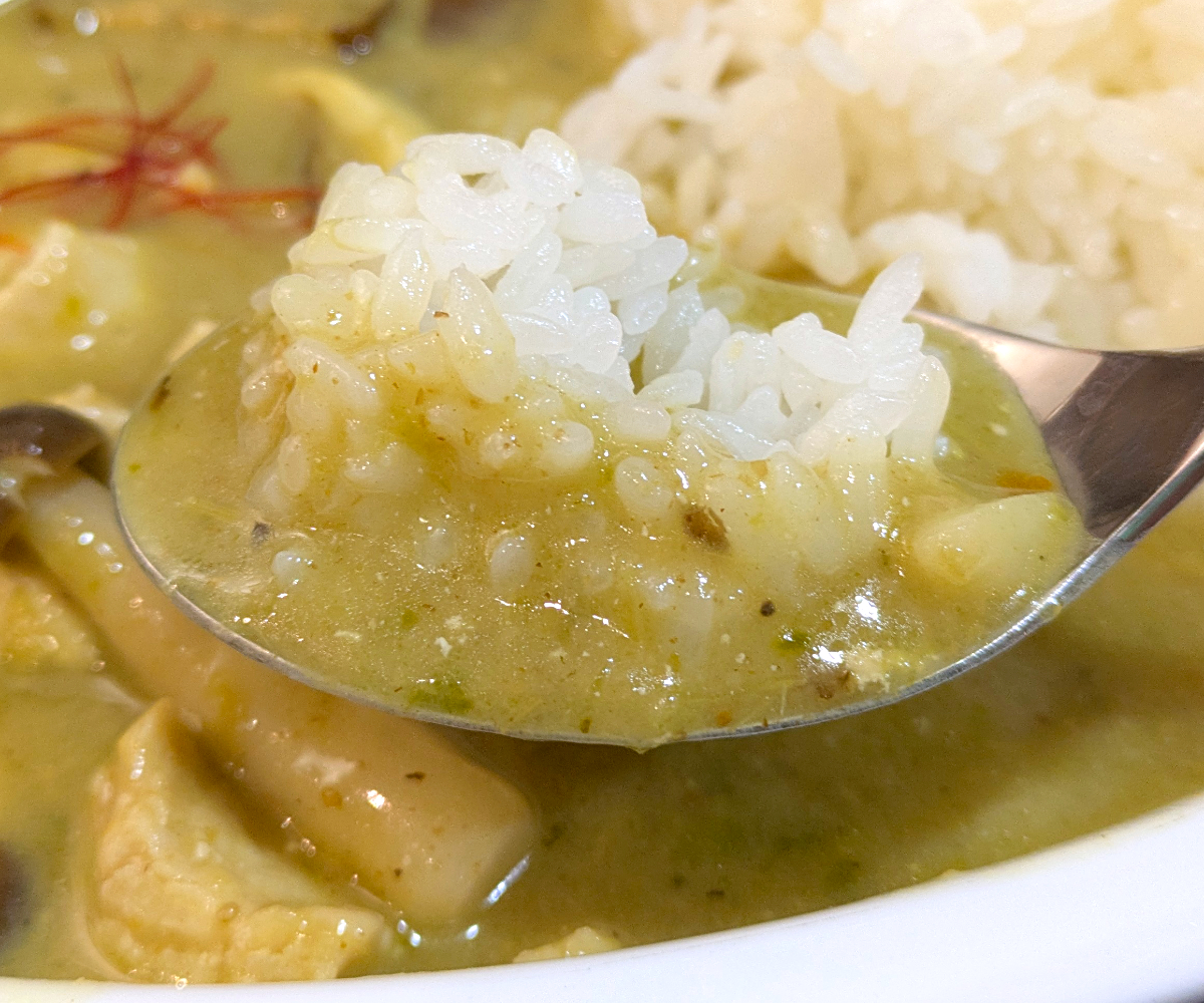 味はというと「本格的」と自称するだけあって、ココナッツの甘さが強く、味に深みもある。ほどよく辛味のアクセントが効いていて、あの懐かしのまかないカレーを想起させてくれる。