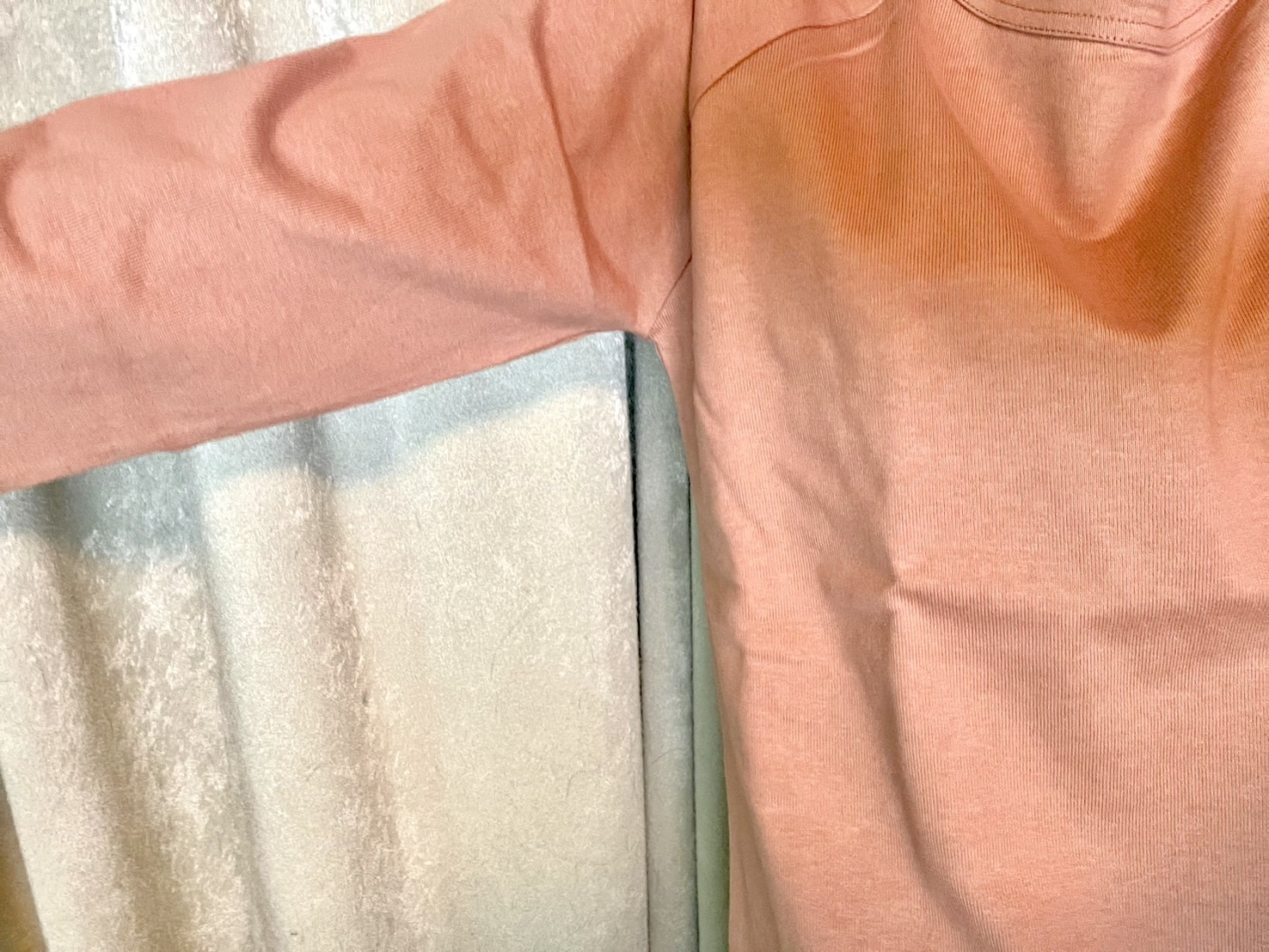 ▼厚みは「ちょっと薄目のトレーナーの生地」といった感じだった。5月頃になるまでは、下にもう一枚着ないとちょっと寒いかもしれない