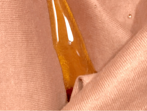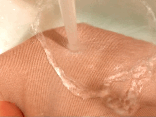 長時間水をかけ続けてみてもご覧のとおり。布にかかった水がこんな形になってるの、見たことないんだけど?