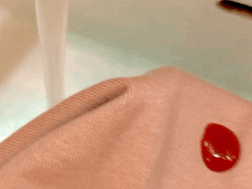 写真撮影もそこそこに、急いで服を洗面台に持ち込む。そしてケチャップがついた部分に水を当てた瞬間……