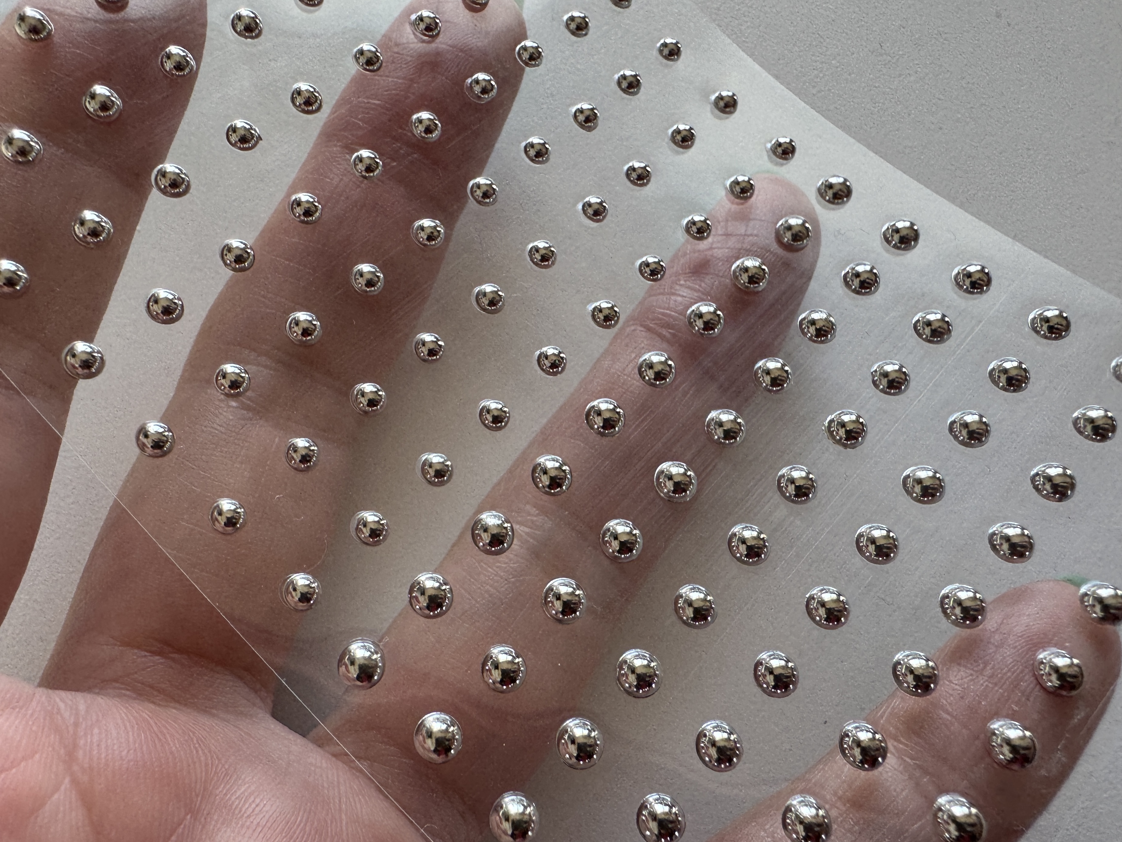裏面には接着剤がついており、そのまま皮膚に貼り付ければOK……という触れ込みであるが、粘着力の観点から、個人的には「つけまのり」等での補強を推奨したい。3個に1個くらいの割合で気づいたらポロッと取れていた(付属の接着剤のみの場合)。