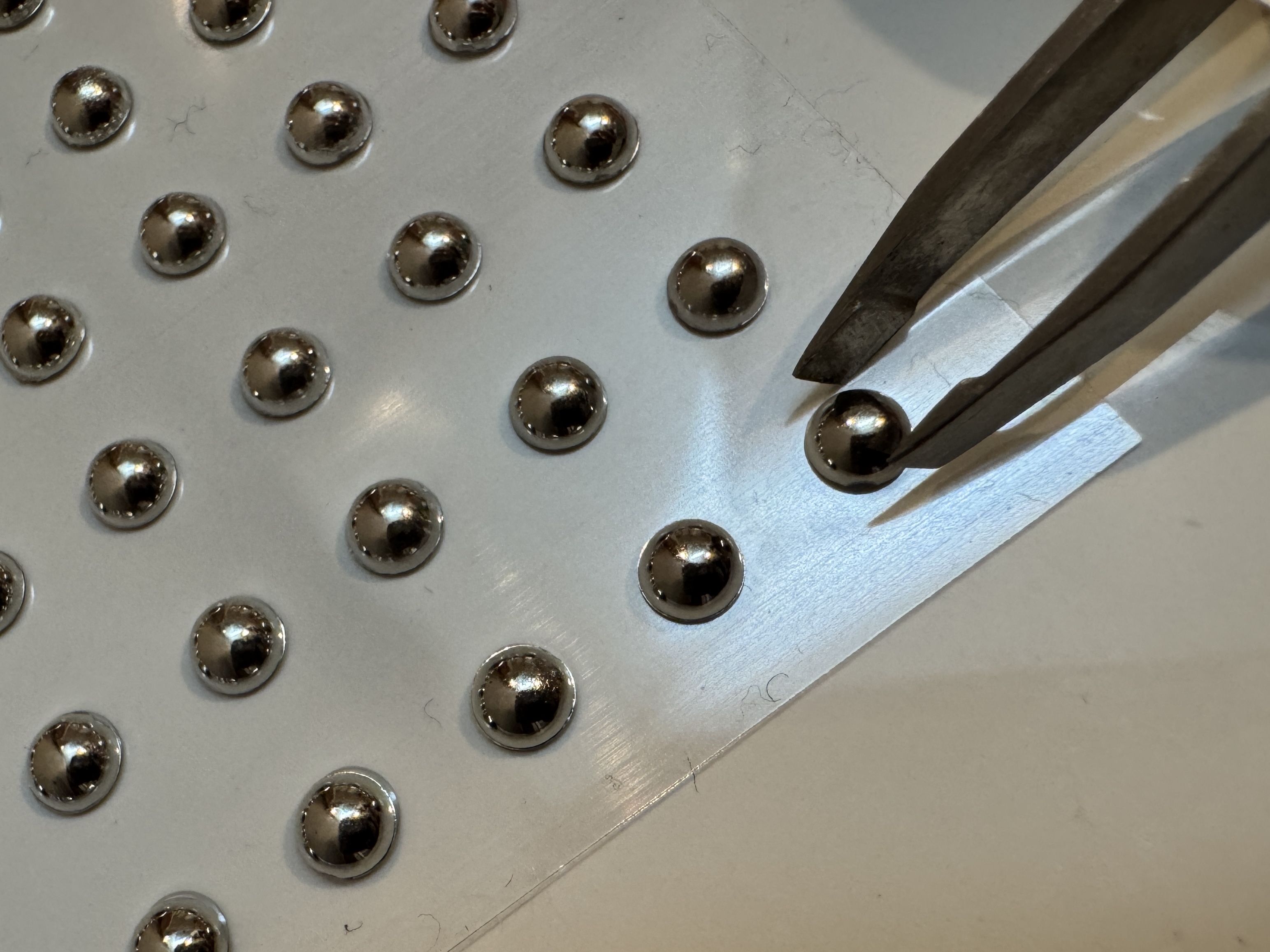 ピンセットでそっと台紙から外し、狙いを定めて顔面にヤッ! と押し付ける。