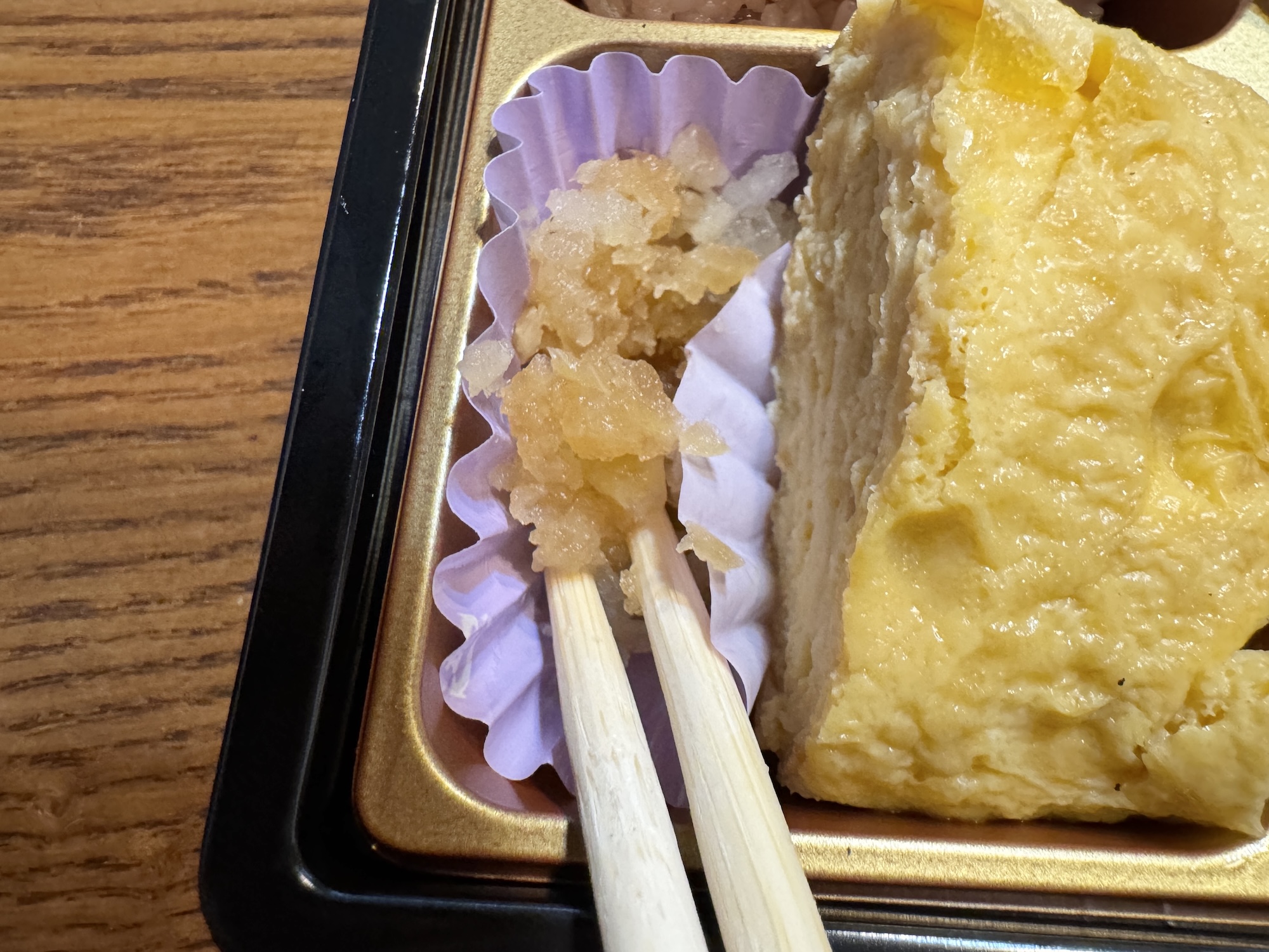 さらに卵焼きの隅に、これまた無理矢理押し込まれた大根おろしも「ウムム!」とうならせる気遣いであった。これで862円(税込)は安い。ちゃんとしてる系の会議とか法事で堂々と出せるレベル。