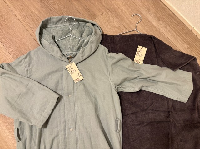 参考リンク:無印良品「ふっくらパイルバスローブ」、「ガーゼパイルバスガウン」、「バスタオルポンチョ」