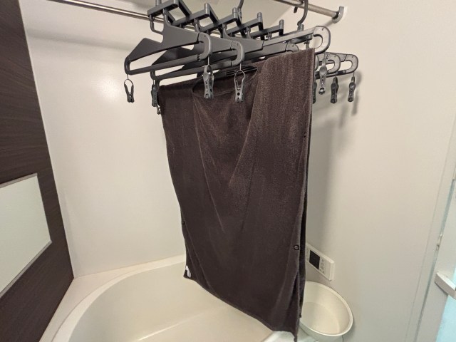あとはこういうタオル系のものって、洗濯したときの乾きやすさも大事だよね……ってことで、実際に洗濯して乾かしてみた! 乾きが悪くて生乾き臭が発生したりするのは避けたいからね。