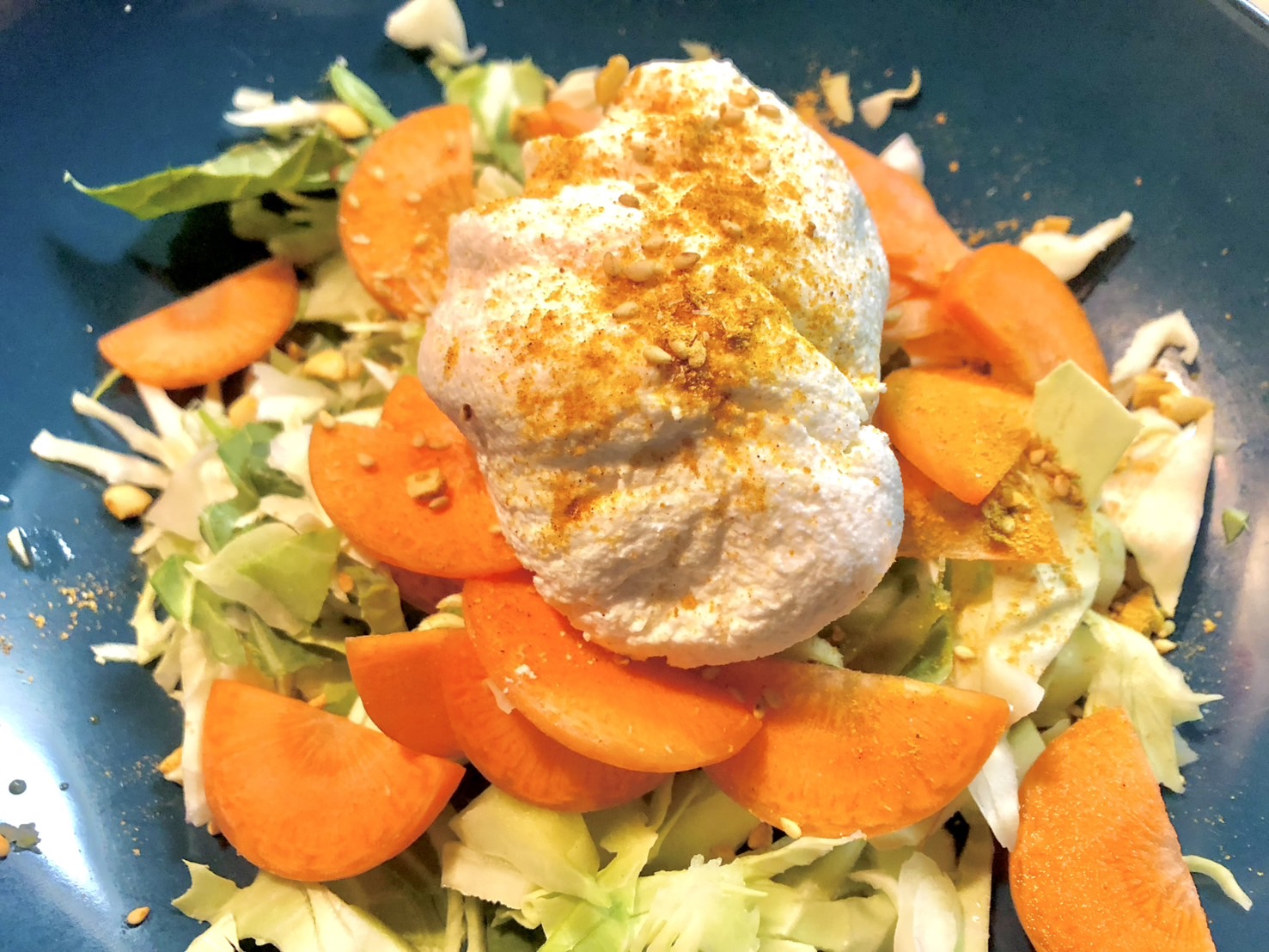 サラダの具材にもよるだろうけど、今回試したキャベツ・にんじん・カッテージチーズの組み合わせでは辛さがかなり中和されていてパクパク食べ進めることができた。