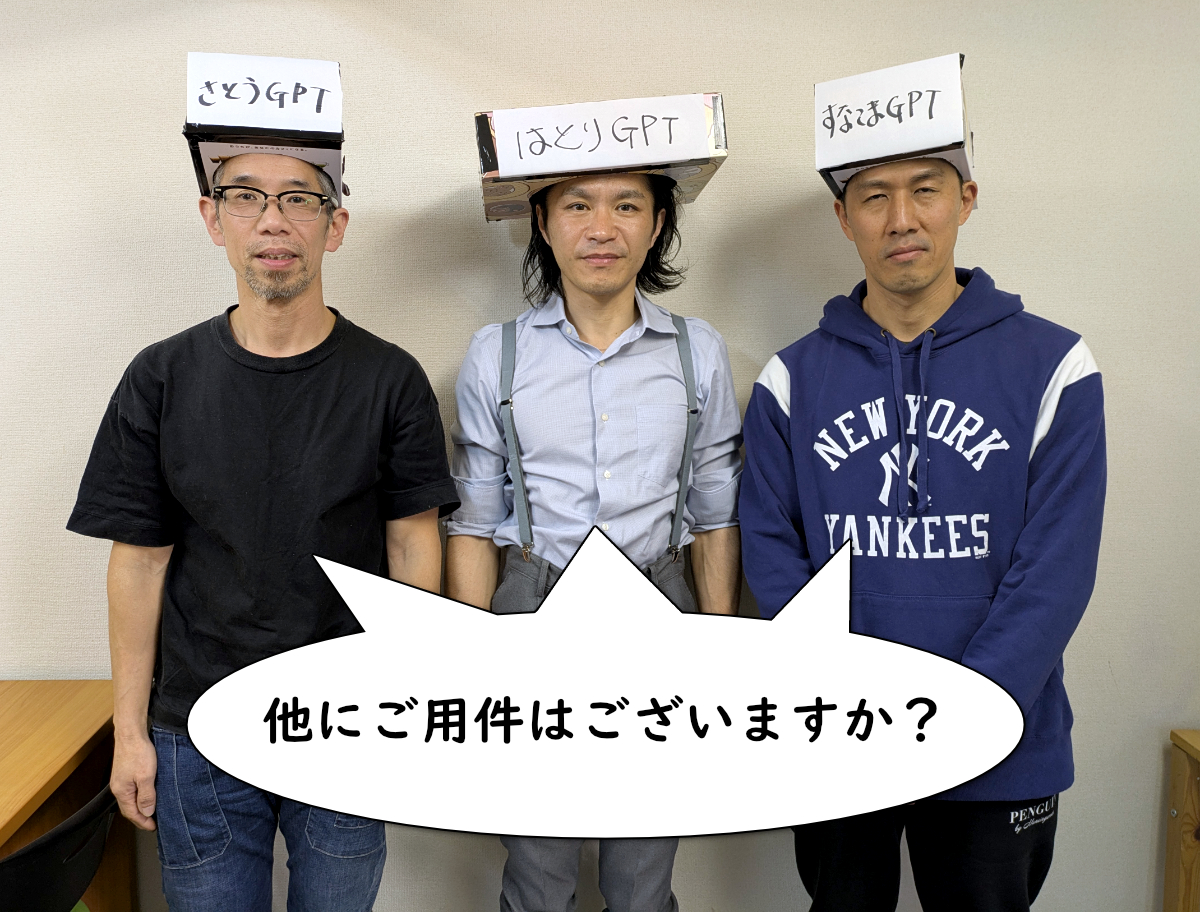 さとうGPT・はとりGPT・すなこまGPT「他にご用件はございますか?」