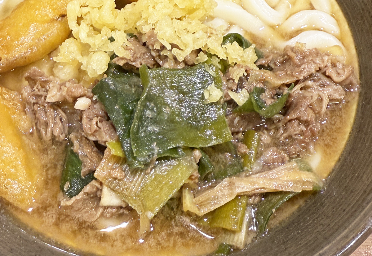 「肉」は東京人の私からすると、かなり甘めのチューニングだけど、それはそれでまた良し。このうどんなら、甘い方が絶対に合う。