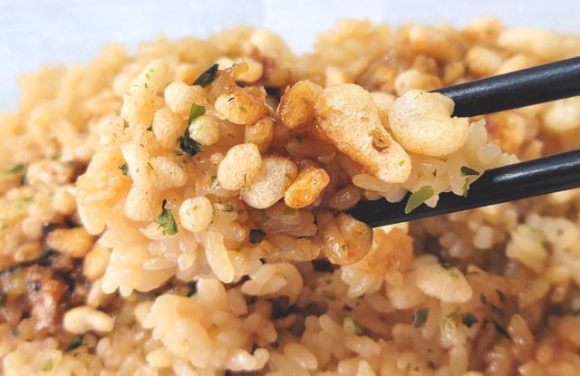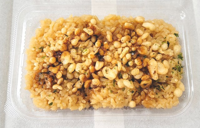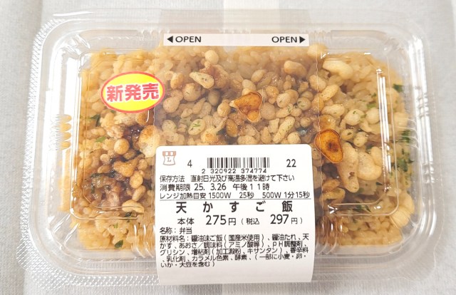 が、このほどそんな「盛りすぎ」路線とは対照的な商品を発見してしまった。2025年3月25日に新発売されたその商品の名は、「天かすご飯」。文字通りご飯の上に天かすが乗ったシンプル極まりない小型の弁当である。