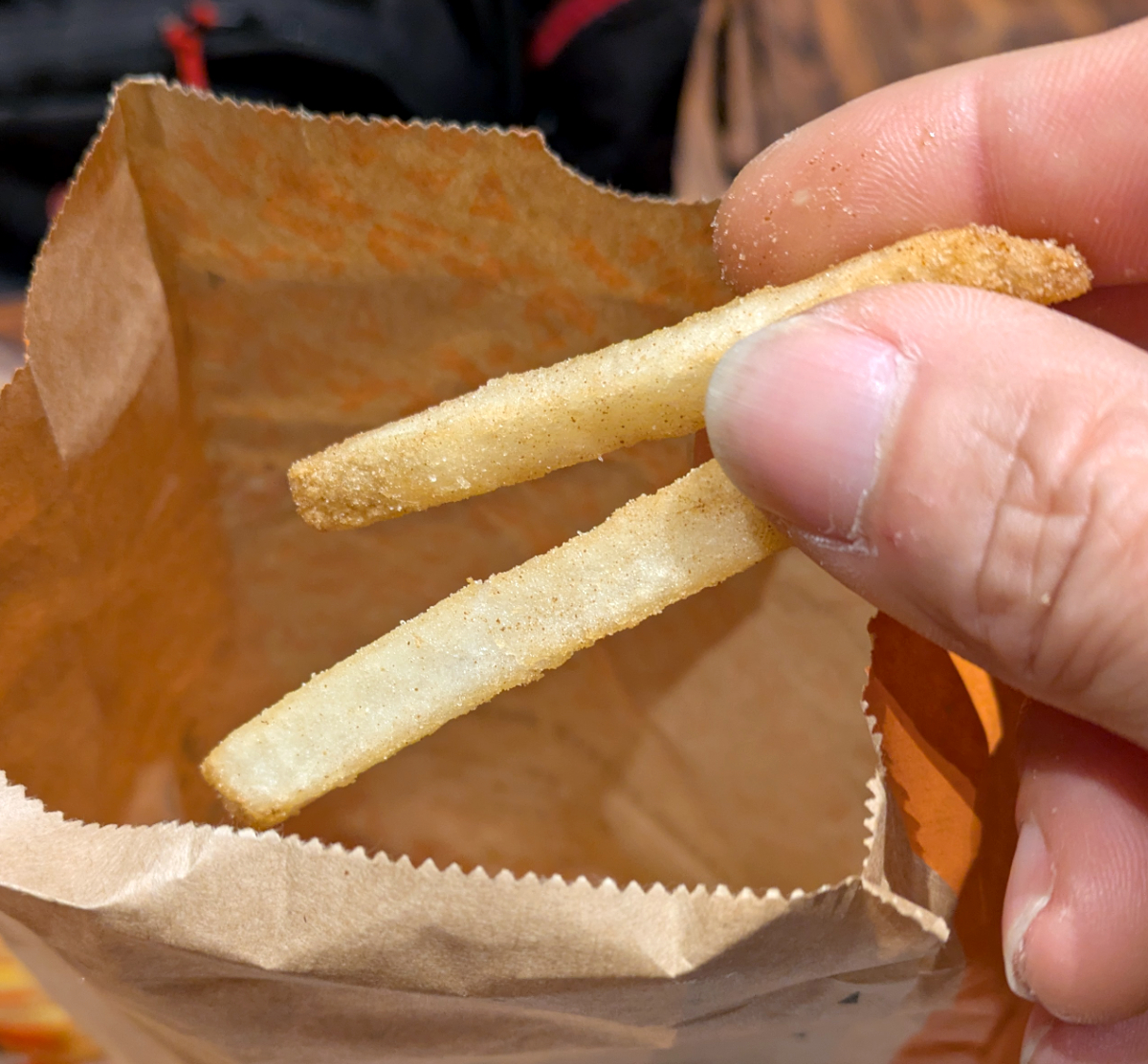 たこ焼き味というポテトのフレーバーも、しっかりたこ焼きソースを感じさせる。おまけに、マヨネーズの風味をプラスしているので、味だけで言えばたこ焼きそのものと言ってもいいくらいだ。