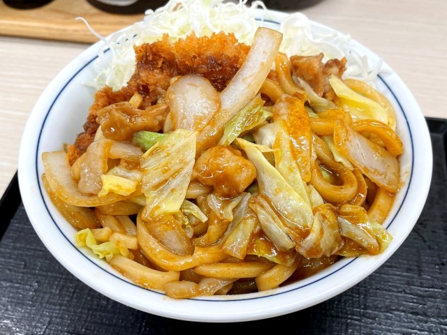 【困惑】かつや新商品『カレーうどんカツ丼』が思った以上に意味不明で震えた / うどんの場違い感が尋常ではない
