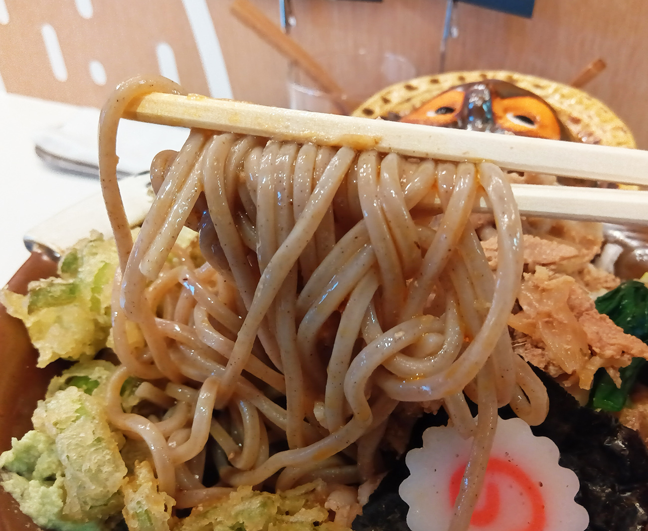 なお、私が注文したのは冷やしたぬきそばM(890円)に肉盛り1.5倍(+450円)だったのだが、これに代表されるように、エビ天ぷら(+300円)、ちくわ磯部揚げ(+200円)など、トッピングにおいてもたぬきそばの概念を越えている。