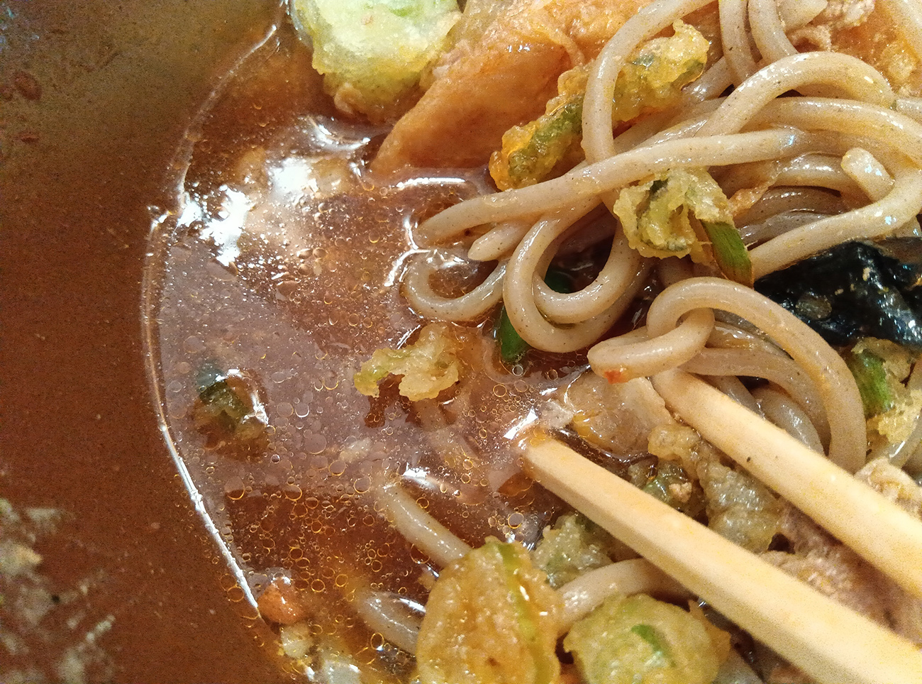 当初、私(中澤)は「麺が違うのかな?」と思った。『なぜ蕎麦にラー油を入れるのか。』のガシガシしてコシのある麺は、そばの括りで考えるとかなり特殊である。あっちはつけ蕎麦だからというのがあるけど、それがもっとザ・蕎麦という麺になっているのかなあと。