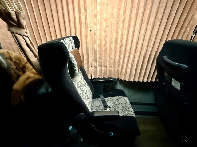 片道料金は1万500円(バス運賃1万円・保険500円)。祝前日だったため4列シートでも9500円くらいだった。プラス1000円でプレミアムなシートを確保したことになる。