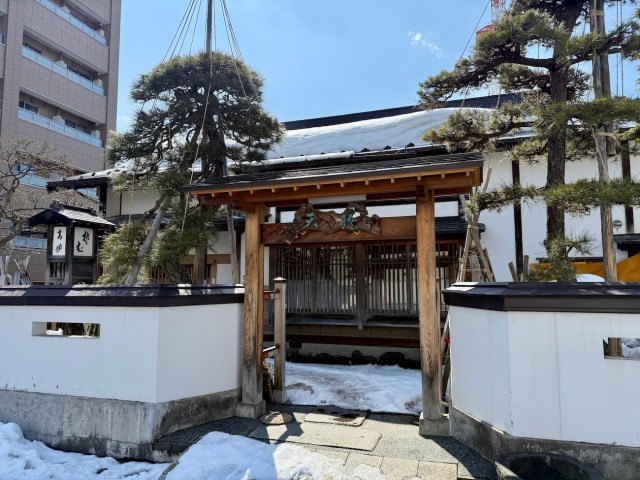 というわけで、壱番館から高砂を目指した。道中で見かけた白とミントグリーンのルネッサンス風建築は「青森銀行記念館」とのこと。明治37年(1904年)に第五十九国立銀行として誕生した国の重要文化財だ。雪景色とマッチしている。